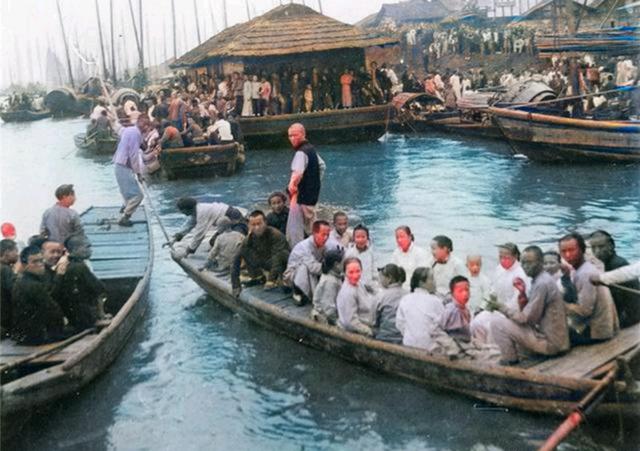 图为1933年的湘潭,湘江上正在举行一场“水上活动”,数条满载群众的木船行驶在江面上,岸边也围满了民众!大家正在观看江上的“划船比赛”!
