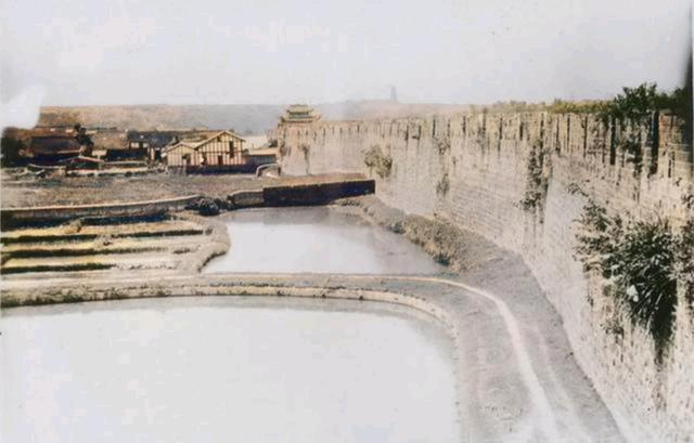 1933年的湘潭城墙,据了解,湘潭城墙最早修建于明万历年间,历朝历代在这里筑城为守,后来历经多次重建修复等,现存部分古城墙位于湘潭市河西喇叭街口与大埠桥交界处!图中的湘潭城墙高大壮观,保留还算完好,城墙脚下是一片片的“水塘田地”?
