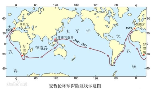1520年,麦哲伦率领西班牙船队从大西洋进入太平洋,中途到达资源丰富的亚洲,欧洲人纷纷前去寻找财富。
