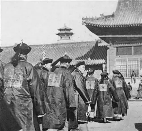 照片中是清朝官员早晨入宫上朝的景象,这一场景似乎和电视剧中所描绘的没有很大区别,晨间大臣洗漱穿戴整齐之后便进宫上朝,在这个过程中文武百官需要穿过殿前的一道道宫殿,最后到达乾清宫上朝,当然在去的路上大臣们往往会相伴而行,聊着各种各样的话题,就如同现在上班开早会一样。