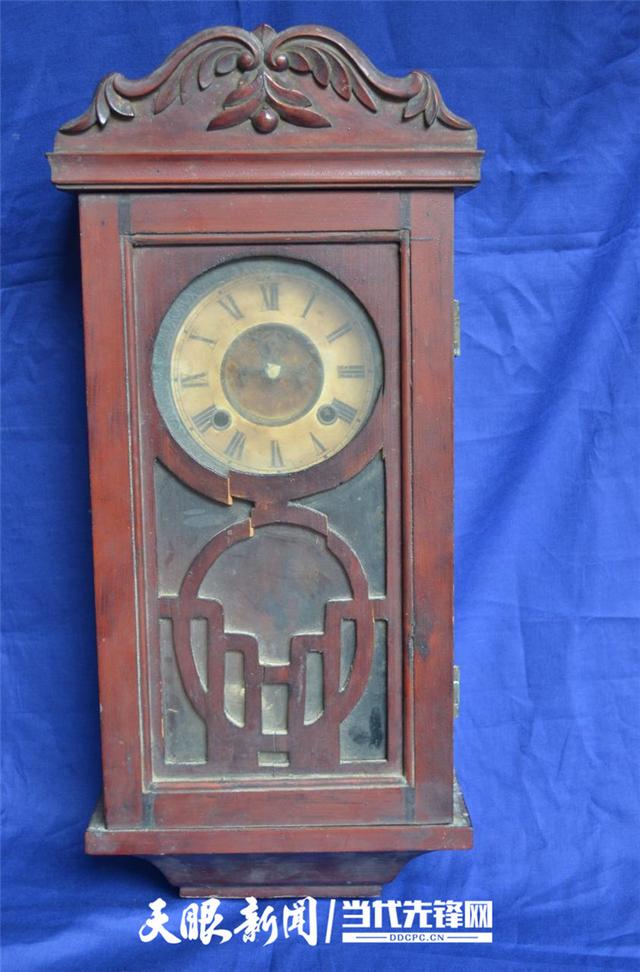 遵义会议会议室东壁墙上有一面挂钟,长50厘米,宽22厘米,厚11厘米,为自鸣木壳机械摆钟。挂钟刻度为罗马数字,钟顶饰有变形植物图案木雕,底部系倒梯形木座,钟面有玻璃门,门的四周为木质雕花边框。钟已不运行,时针、分针和钟摆已不存在。 为纪念举世闻名的遵义会议,1954年,经过多方调查考证,确定遵义会议就在国民党黔军第二十五军第二师师长柏辉章私邸二楼的小客厅召开。据柏家奶妈、帮工等说,红军走后他们回柏公馆时,看见楼上的挂钟等都在原处(即遵义会议会议室)未动。 后来,柏家办了一所小学,挂钟被抬到小学使用。新中国成立初期,柏家办的小学停办,挂钟移交给了遵义朝阳小学使用。 1955年,挂钟由朝阳小学交给贵州遵义会议纪念馆收藏。 1994年,这面挂钟经国家文物局专家组鉴定,确定为国家一级革命文物。 红色故事2: 中国工农红军第一军团总指挥部特务连印章