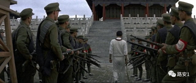 剧中有一幕,日本人暗中安排了婉蓉离开。他追出去,但是大门就像以前他在紫禁城时一样关闭了。他以满洲国国王的命令让人开门,却没有人听他的。