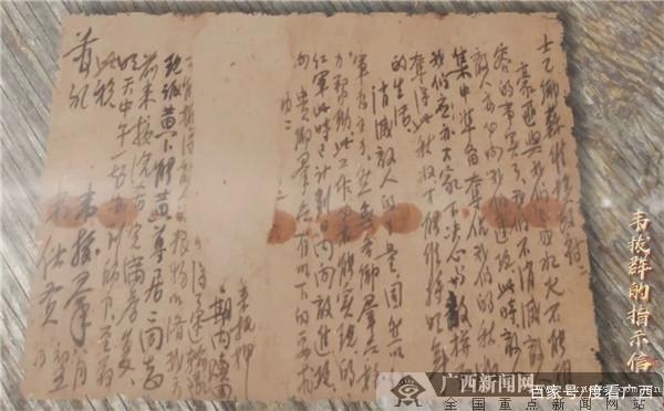 这一页泛黄的信笺,是1931年9月16日,壮族人民的民族英雄韦拔群写给东兰县士乙乡苏维埃政府的指示信。