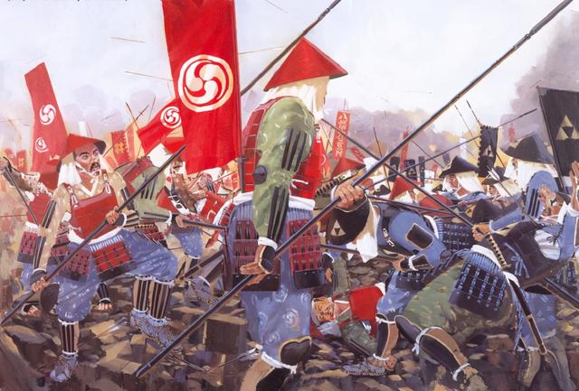 背着旗子的日本士兵往往是军队的小队长,在战场承担起战术任务,他们背上的旗子比人高出一倍,以方便士兵辨识。古代的战场可不像电视剧里演的那样,双方约定俗成有颜色区分,古代士兵穿甲率很低,有皮甲就已经谢天谢地了,大部分人的装备差不多,打着打着容易混乱,这时候抬头看一眼自己方的军旗在哪,展现自然就能稳定下来。