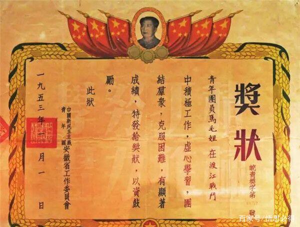 更为荣耀的是,就在1951年10月,马毛姐和其他几名英模人物一起赴北京参加了国庆观礼重大活动,她受到了中央领导和首长的亲切接见,毛主席还请她到家中做客吃饭,当得知她还没有自己的学名时,毛主席知道她姓马,就为取名叫马毛姐,还赠送了她一个笔记本,写上了"好好学习,天天向上"的题字。这是马毛姐一生的荣耀和她的自豪。