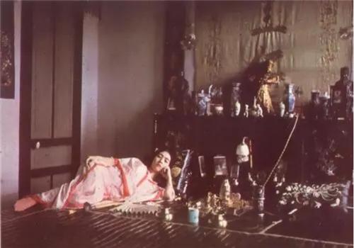 画风一转来到亚洲,照片中的女子慵懒的躺在床榻上,上面还摆放着许多贵重的物品。可见这位女子身份不简单,从她的装饰无法分辨其国际,但是大致可以确定是东亚国家,再看其妆容和脸庞,慵懒中透露着华贵优雅的气质,显然是一位贵族女子。