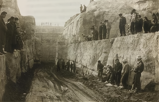 到了1995年夏天,炸山采石的村民在山顶,清理出了一个长宽各50多米的长方形石坑,四周有明显人工开凿的痕迹,里面还发现了青铜凿子,这一情况引起了村干部的注意,他们不敢怠慢,立刻将情况对上级作了汇报。