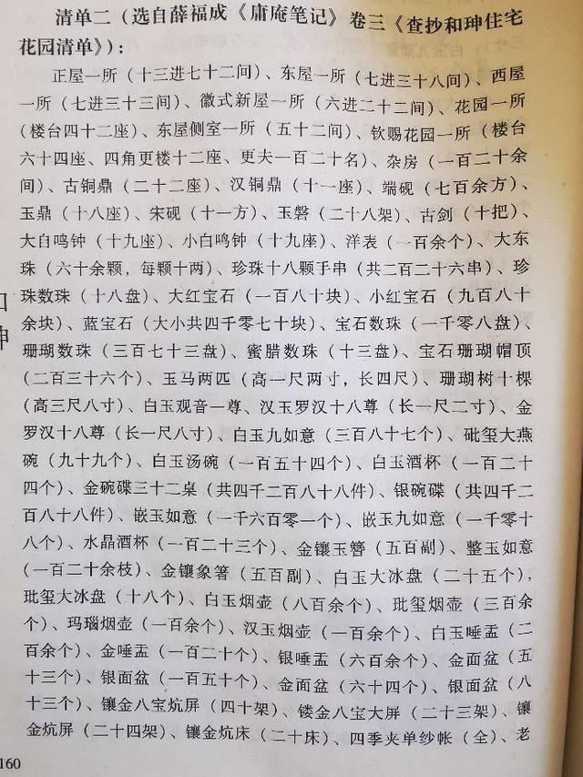但是账目并不是这样算的,要知道和珅的资产种类很多,其中房地产就有“房屋三千间,田地八千顷”,这部分财产绝大多数在北京的最好地段,放到现在光这一项其资产便是天价,无法估算;另有商业“当铺七十五座、银号四十二座、古玩铺十五座、玉器库两间、绸缎库四间、瓷器库两间、洋货库两间、皮张库两间、铜锡库六间、药材库两间、玻璃器库一间等等”,这些铺子光本金大约就够两亿两白银左右,还不算其中没有估值的货物,而这些商铺都开在北京最繁华地带,放到现在价值更是难以估量;再看从和珅府中抄家抄出来的贵金属:“一千两的赤金元宝一百个,一千两的白银元宝一百个,生金沙两万余两、赤金五百八十万两、元宝银九百四十万两、白银五百八十三万两、苏元银三百一十五万四千六百余两、洋钱五万八千元、值钱一千五百串、金玉首饰两万八千余件”,光这些贵金属放到现在能值多少钱呢?