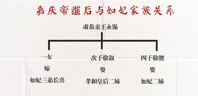 嘉庆帝继后钮祜禄氏的先祖是额亦都的六子达隆蔼,而如妃的先祖是额亦都的八子图尔格。从嫡庶传承来看,嘉庆帝继后(孝和皇后)和如妃都属于额亦都庶支,而且关系已经很远了,但恭阿拉(孝和皇后之父)家与善庆(如妃之父)家通过与肃亲王府的联姻建构在了一起。