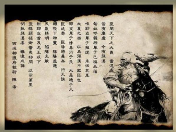 陈汤很有头脑,他不会让自己这边陷入被动,为了占据“大义”,他先是去找“匈奴”的郅支单于,说:“汉朝可怜你在西域受苦,让你归顺,好享尽荣华富贵。”
