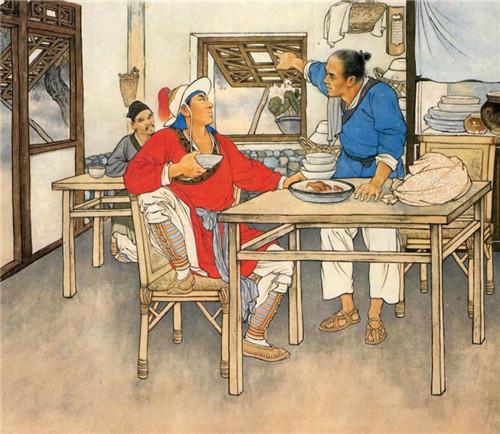 离开家的那些日子,他总是想念着哥哥,后来听说被他“打死”的人只是昏迷了。也就是说没死,那他自然也不必吃官司,便辞别柴进、宋江打算回老家去找哥哥。走着走着到景阳冈的时候,瞧见一酒家:三碗不过冈。他是个好酒的人,也有点男儿血气方刚的,便留下来喝十八碗酒。这才踉跄着往冈上走去,其实上冈之前,他便知道这上头可能有老虎。
