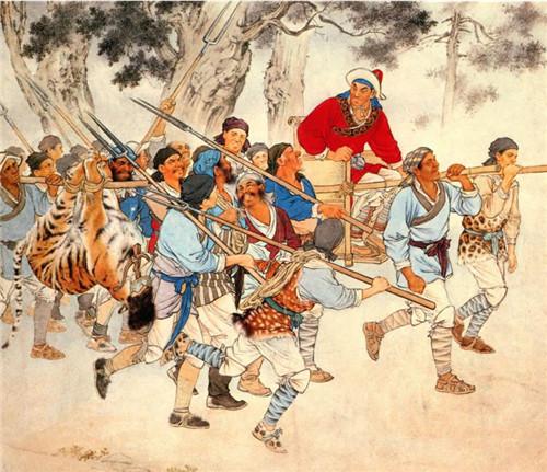 打死老虎后,武松便打算下山,路上遇到了两个前来打猎的猎户。猎户一看武松打了老虎,见一人扛难扛,便帮忙一起抬去了县衙。此前那个官府告示上说明了,只要有人能够猎杀猛虎,那便赏1000贯银子。武松打死了猛虎,自然可以领,而在领了这1000贯银子之后他将其分给了当地的猎户。
