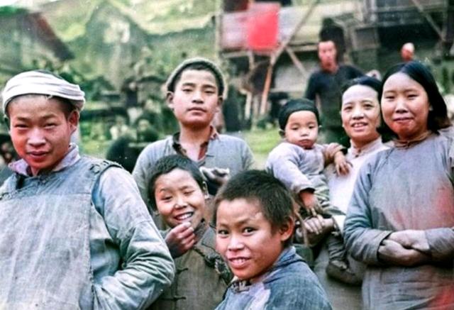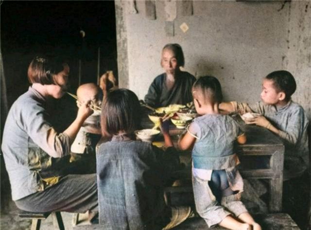 图为1940年的重庆一户三代同堂的人家,正在吃饭!老奶奶坐在上座,母亲及四个孩子坐在旁边,此时没有看到男主人?也许是在远方做事吧!照片中的小男孩十分有趣,穿着一条开裆裤跪着吃饭,因为坐着不够高吧!