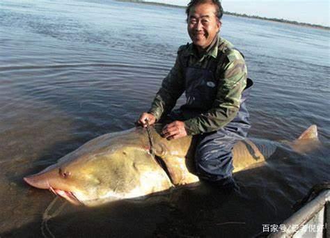 又划了一会,我听到了水流的声音,回头一看,好家伙,真是一条大鳇鱼,估计有一两米长,它显然是受伤了,游动地很吃力,要不然也不会一直在水面上浮着。