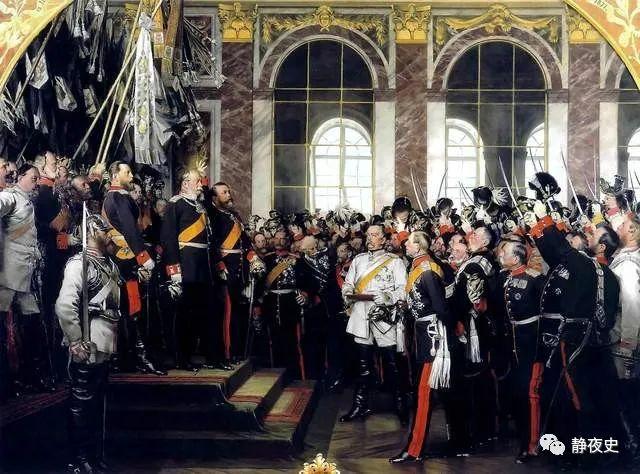 1870年,普法战争爆发,法国战败,皇帝拿破仑三世被俘,除割让阿尔萨斯和洛林,更不得不赔偿50亿法郎。随后普鲁士统一了南方各邦国,威廉二世在1871年加冕为德意志皇帝,德意志第二帝国建立。