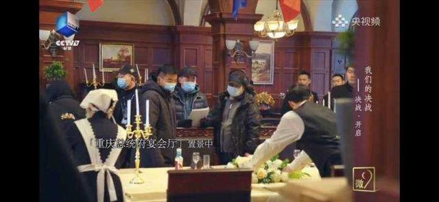 美术指导王刚按照要求,多方查找资料,文字的、影像的,在充分还原的基础上,剧组以1:1的比例搭出了一个仿制的场景,还原了当时的宴会厅。