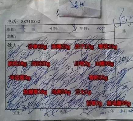 中国某些医生的处方也是不遑多让。这张处方气势磅礴、酣畅淋漓,笔者根本没看出来是汉字。