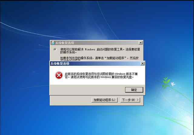 错:注意边肖的认证,如果你是win7 32系统,一定要用win7 32系统光盘来修复,否则会导致不兼容!如果选择正确,这一步可以忽略。