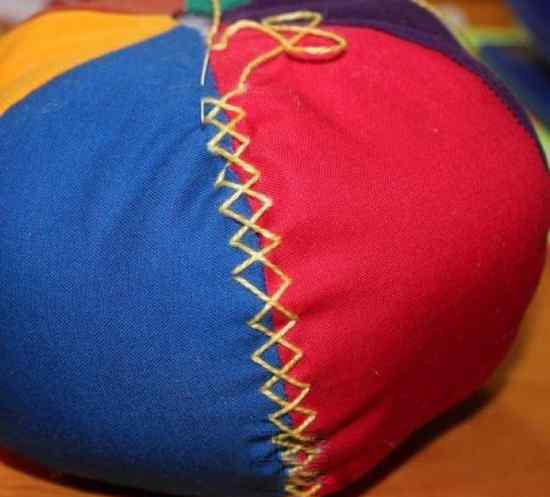 将缝好的拼布翻过来,用棉花填满,直到填满