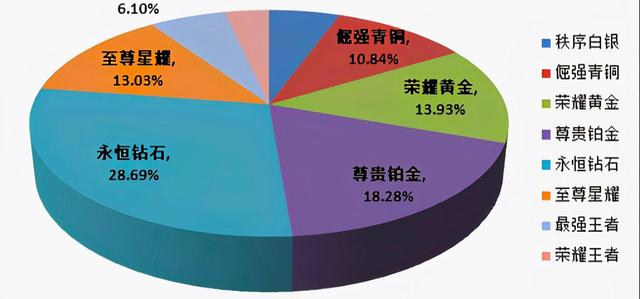 而造成这种现象的原因,那就是大数量玩家无法分流,在每一个赛季官方发布的的段位分布图来看,至尊星耀与永恒钻石的比例超过了百分之五十,最强王者的比例也达到百分之十,荣耀王者的比例仅仅只有百分之4左右。