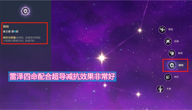 队伍的主要配置!该阵容主要偏向于平民玩家,因为当中的角色全部都是四星,分别为:班尼特,罗莎莉亚,雷泽和辛焱,相信大家在初次看到后,都会感到疑惑,毕竟现如今罗莎莉亚和辛焱同属冷门角色(适用性太差!),并且她们虽然都能减少敌人的物抗,但技能却无法完美地衔接在一起,不过大家不要忘了,在这套打法中,雷泽是作为主C进行输出的(四星战神名不虚传!),只要给他升到四命,配合超导反应,差不多能将敌人的物抗加防御,减掉一大截,其次罗莎莉亚的大招拥有快照机制,还能进行脱手,开局优先释放,再加上雷泽从中调剂,便可顺便协助辛焱,打出蒸发伤害(双倍的快乐),整体来看差不多能撵上国家队了,有感兴趣的玩家,可以在私下里试验一番。