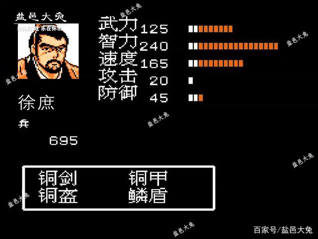 徐庶没有出现在此游戏中,终究是一件憾事,特别是对于那些特别喜欢徐庶的玩家来说。为此,笔者专用给徐庶制作了一张武将属性图。虽然徐庶没有机会出场,但实力永远在。