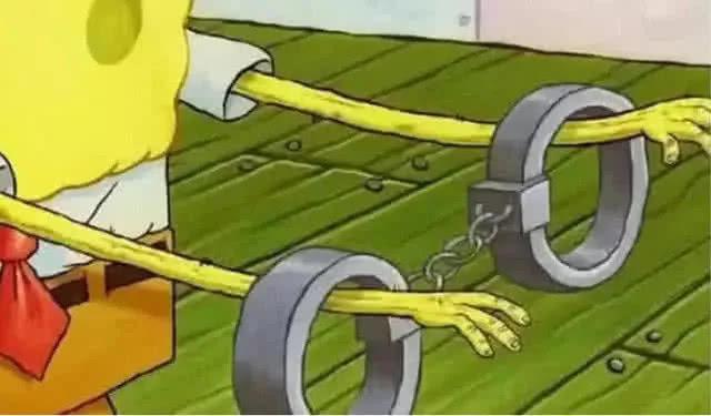 2.在某一集的剧情中海绵宝宝被抓了起来,他的双手被铐上了手铐。但是由于胳膊太细,手铐形同虚设,但是我们并没有发现。恋爱中谁不是这样呢,给你我的心,你随意铐住我。