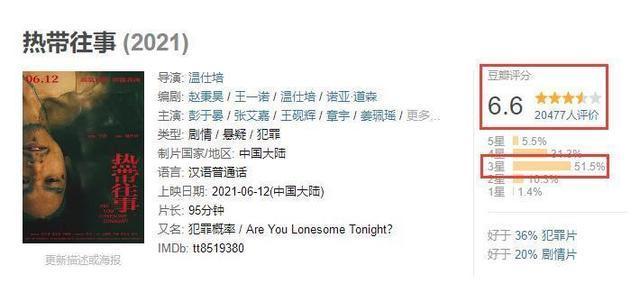 豆瓣评分6.6分,连一向均分都在8分以上的猫眼才给了7.4分,从口碑来看,《热带往事》破亿很难了。