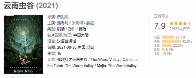 《云南虫谷》首播放开场5集过后,网友们的评价是有惊喜也失望,豆瓣的评分已经达到7.9分,虽然比前作少了些,基本达标。