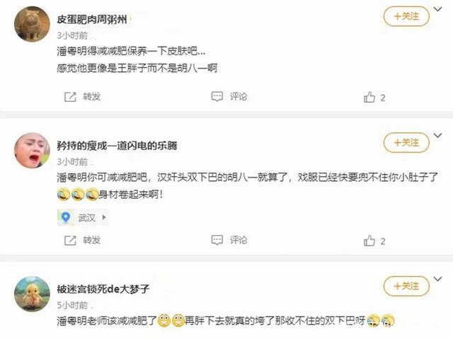 不能怪网友希望潘粤明减肥,对于一名合格的演员来说,为了剧情的需要,确实需要进行自我管理。