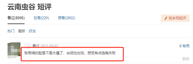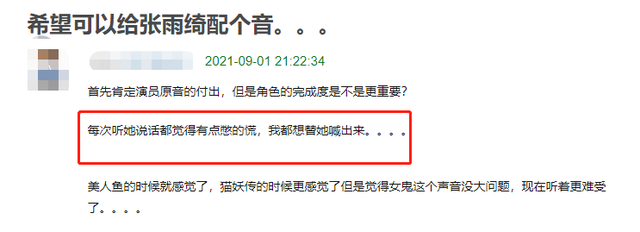 并且,张雨绮的原声台词也遭到不少人的吐槽,有观众觉得张雨绮一直在憋着声音说话,听的时候恨不得替她喊出来。