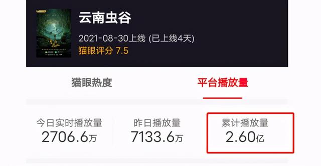 在各部大剧都走势低迷的情况下,刚上线不久的《云南虫谷》却反其道而行之,口碑和热度都是节节攀升,开播4天,平台累计播放量突破2.6亿,还获得了网络剧播放量3连冠,豆瓣开分高达7.8分。