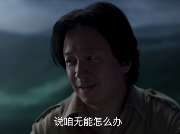 而在山神庙发现Shirley杨父亲的尸骨时,看着流泪伤心的Shirley杨,胡八一想安慰又怕说错话,只能歪头、侧身、用眼睛试探着观察Shirley杨,潘粤明真的生动的诠释了什么叫欲言又止。