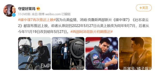 《壮志凌云2》从今年11月19日改到明年5月27日。