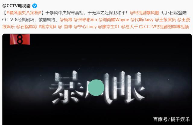 《暴风眼》定档9月5日,登陆CCTV-8经典剧场。