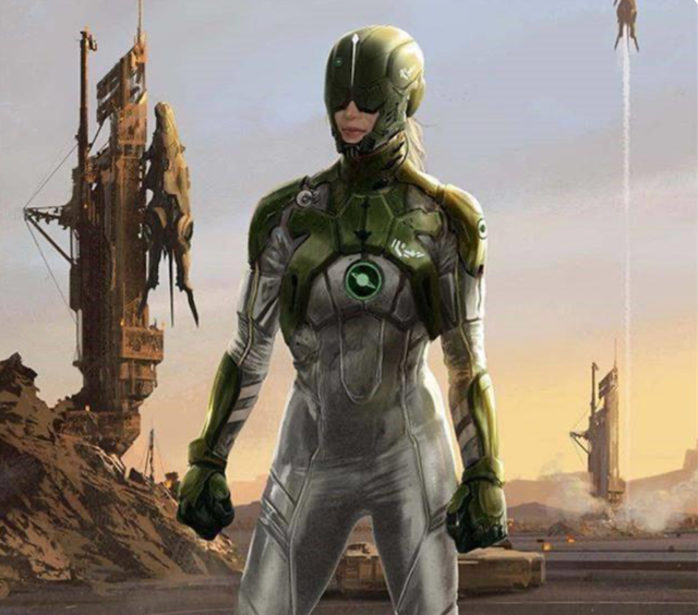在惊奇队长的克里战士装扮中,和原版不同的是,早期设计中还有一版绿色的克里战衣。