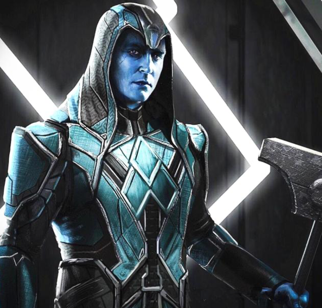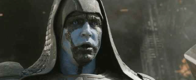 而在漫威早期的对于罗南这个角色的设定中,其实一开始并没有像电影这样大幅度给演员颜值遮挡,而是近乎还原了“精灵王”演员李·佩斯的颜值。
