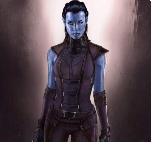 在漫威一开始对于星云的设计中,星云并不是这种半人半机械的造型,相反,其实是和卡魔拉类似的形象,一头秀发配上蓝色皮肤,使得凯伦·吉兰的颜值能更好的展现出来。
