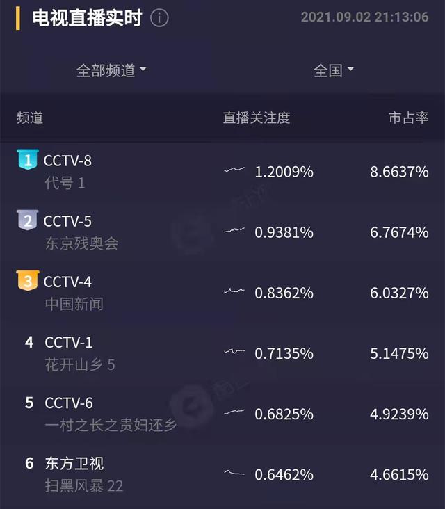 根据酷云实时的收视率数据来看,《代号·山豹》播出之后,收视率一路看涨,在首集结束的时候,这部电视剧已经成为全平台同时段节目当中的收视率冠军。这里强调一点,酷云实时的收视率数据,只是一个维度上的参考。《代号·山豹》的综合收视率成绩,需要等待总局的中国视听大数据正式公布,才能得知。