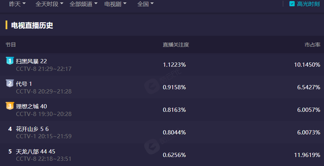 不过有一部新剧《代号·山豹》也在央视开播了,剧如其名,开播1天就露出了实力,一举拿下了全国收视率的top2。