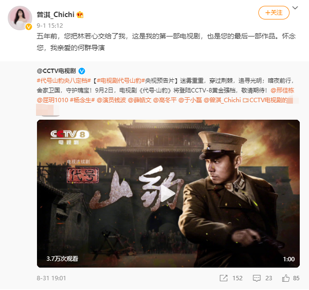目前距离《代号·山豹》杀青已经过去了五年时间,开播后,《代号·山豹》的演员之一曾琪还发博悼念何群导演。