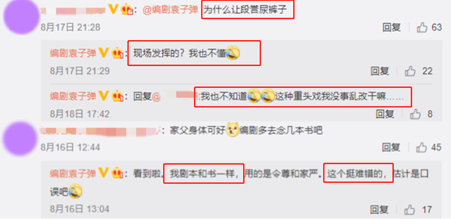 编剧更是难逃其责在社交平台被喷得“体无完肤”,于是袁子弹赶紧在评论区做出解释:什么,尿裤子?我不懂啊,我也不知道啊,我没事乱改干嘛?