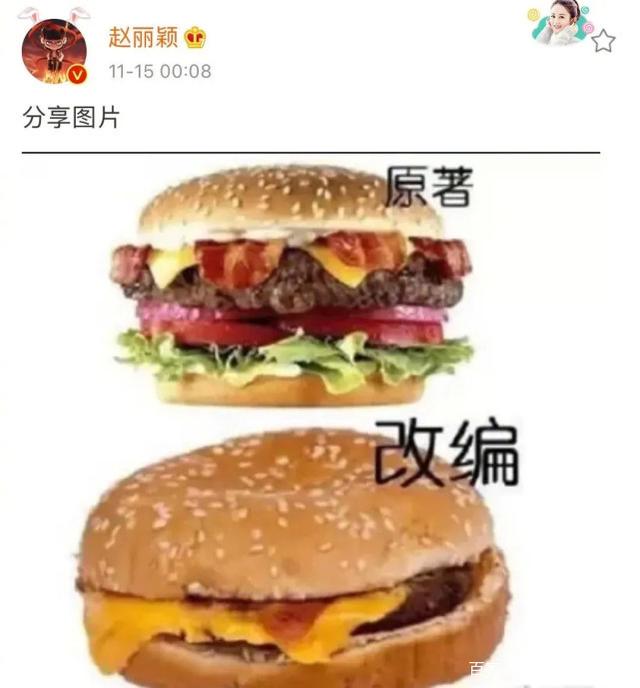 而赵丽颖复出之后拍摄的第一部电视剧《有翡》也被怀疑严重注水,为此赵丽颖本人还在社交媒体上发布图文表示讽刺。主要是因为王一博和赵丽颖两位主角的戏份骤减,反而配角的情节变得丰富起来。配角的不断加戏引发他人不满,赵丽颖本人通过两个汉堡的大小来表示这部作品在改编之前和之后的差别。