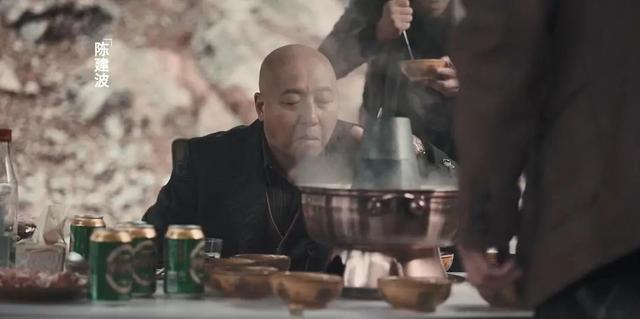 这位大哥出场就很搞笑,一脸横肉+大光头,角色是带有黑势力性质的爆破公司头目,但给人留下深刻印象的,却是吃火锅时呈现出的喜剧效果。