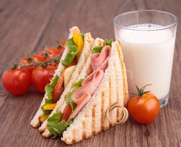 早餐:鸡蛋火腿西红柿三明治半个+脱脂牛仔150ml