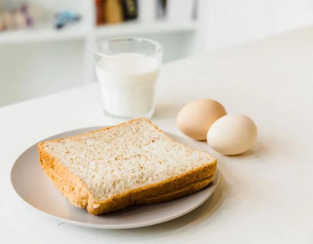 早餐:全麦吐司1片+脱脂牛奶150ml+煮鸡蛋1个