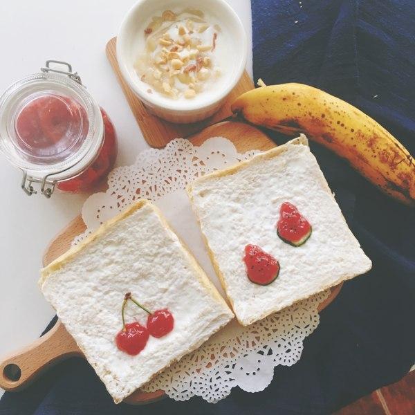 早餐:香蕉1根+酸奶100ml+燕麦片10g+全面吐司1片