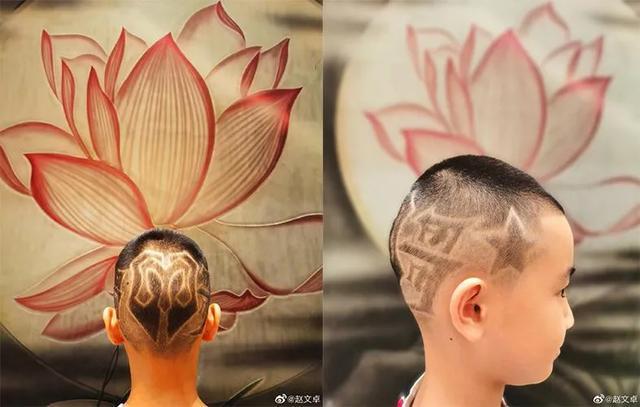 又比如一家人去五台山旅游时,则会剃成“莲花佛手”的图案等等。