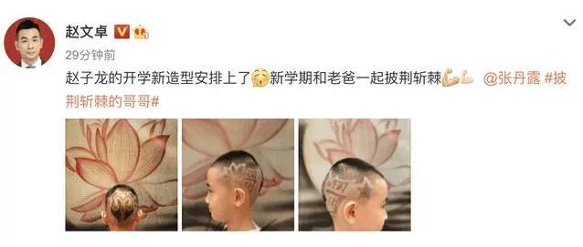 8月31日,赵文卓分享了儿子新鲜出炉的发型并说道:赵子龙的开学新造型安排上了,新学期和老爸一起披荆斩棘。