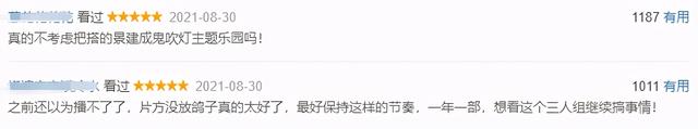 有网友称赞剧中的搭景道具,直言“真的不考虑把搭的景建成鬼吹灯主题乐园吗!“,也有网友肯定了潘粤明主演的“鬼吹灯”系列,表示“最好保持这样的节奏,一年一部,想看这个三人组继续搞事情!”。